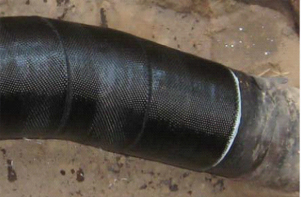 碳纖維復(fù)合材料對壓力管道進行修復(fù)補強的技術(shù),是利用碳纖維布在纖維方向上具有高強度的特性,用環(huán)氧樹脂充分浸透碳纖維絲,外包覆在修復(fù)管道部位,使缺陷部位恢復(fù)原有強度。